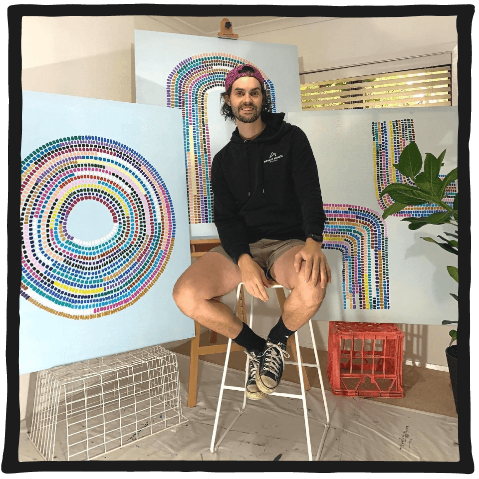 Charlie Nanos is a Victorian artist whose studio sits just off the Mornington Peninsula, where he turns bright colour and pared-back form into contemporary abstractions. His paintings slide between stylised landscapes and pure design, reflecting a love of simplicity that never feels cold. At the core is a desire to bring light and positivity into everyday spaces – art that feels unpretentious, wholesome, and quietly radical in its optimism.