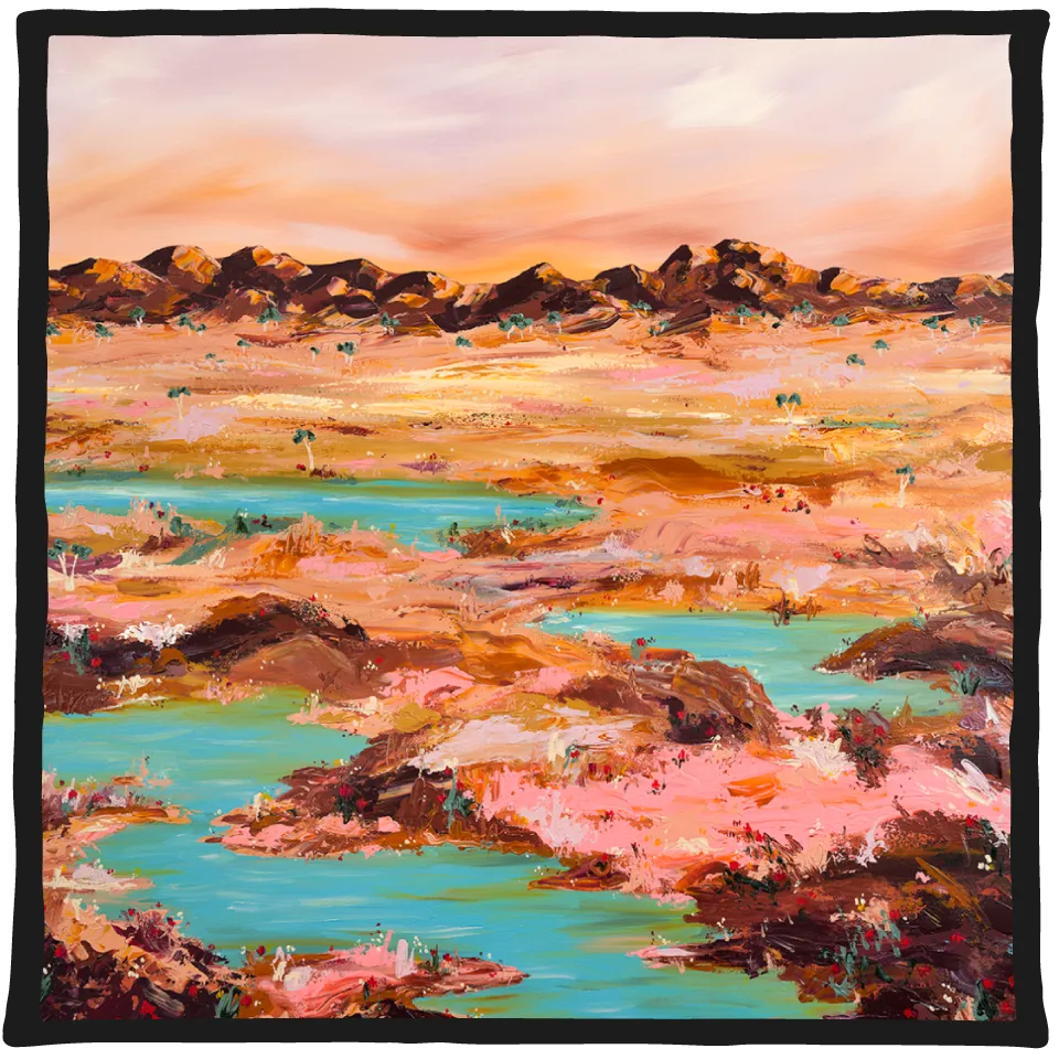 Raised between rural NSW and remote NT communities, Elle Pervez paints the Australian landscape as feeling – mixed media canvases where palette knife meets brush, acrylic meets gold leaf, and place becomes memory. Her work is about connectedness: colour and shape doing the slow work of recall and belonging.