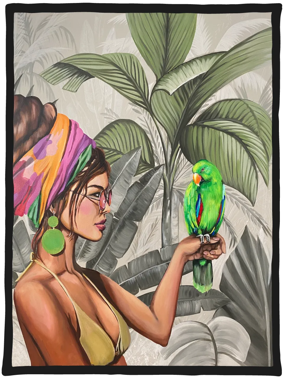 North Queensland’s tropics fire the engine in Lavinia Letheby’s work – murals and canvases packed with reef blues, palm greens, and wildlife that practically step off the surface. She paints the joy and abundance of the far north without cliché: lively compositions, confident line, and colour that feels like midday sun after rain.
